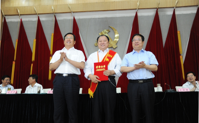 會上,副市長洪玉振宣讀《關于表彰2014年度全市先進企業的通報》,魯西集團、信發集團、東阿阿膠等10戶金獎企業負責人分別上臺接受頒獎。徐景顏、王忠林先后為張金成頒發金牌、證書,并在熱烈的掌聲中合影留念。