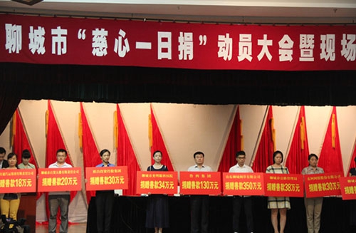 會(huì)議組織了各縣市區(qū)企事業(yè)單位的現(xiàn)場(chǎng)捐贈(zèng)活動(dòng),魯西集團(tuán)與全市130余家企事業(yè)單位參加了現(xiàn)場(chǎng)舉牌捐助儀式。期間,會(huì)議還對(duì)部分貧困家庭進(jìn)行了慈善救助。