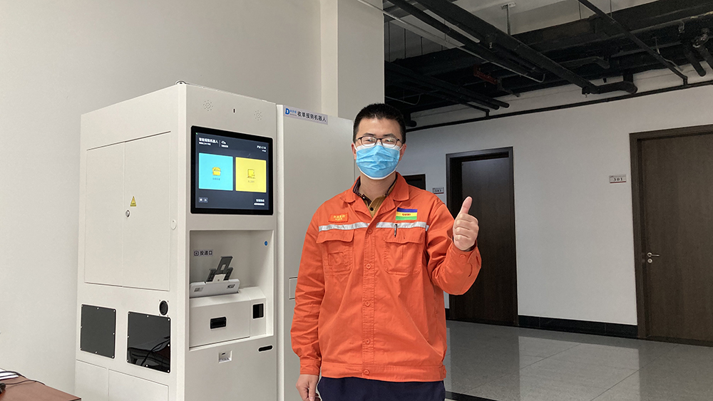 財務人員孟艷艷滿臉喜悅,她說:“我們財務原來專門設立單據接收、登記窗口,每天都會有各部門人員拿著單據來窗口辦理業務,我們要逐一和業務辦理人員溝通、做好臺賬登記,有時一天下來有大約160份單據進行處理,感覺工作量比較大。現在不一樣啦,大家可以隨時通過智能收單機器人完成各類單據的快速投遞。財務檔案人員可以通過后臺管理系統,根據實時掌握的收單機器中單據數量,集中安排時間收取單據,時間成本管理效果很明顯。”