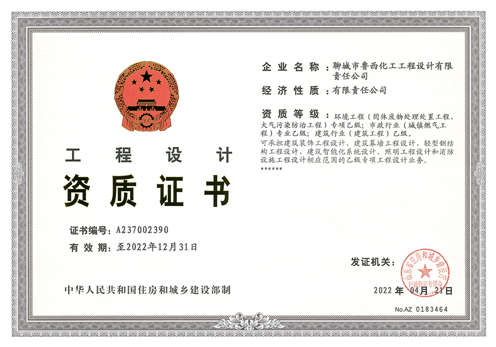 4月21日,魯西集團(tuán)固體廢物處理處置工程專項(xiàng)乙級(jí)資質(zhì)順利通過山東省住房和城鄉(xiāng)建設(shè)廳審批,并取得資質(zhì)證書。