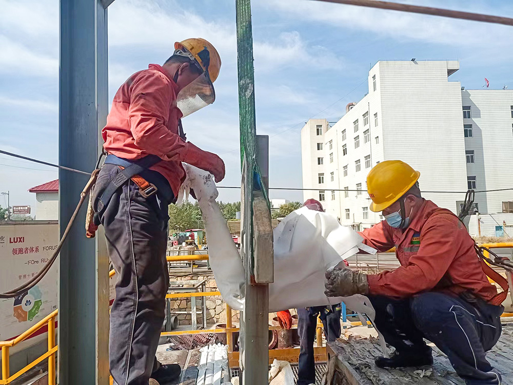 氯化鈣事業部濕電除塵項目建設現場機聲隆隆,塔吊高聳。施工人員進進出出,一片繁忙景象。為加快濕電除塵項目施工進度,氯化鈣事業部的二十多名維保人員放棄了與家人團聚的機會,從旭日東升忙到夕陽西下,一刻也沒有放松節奏。