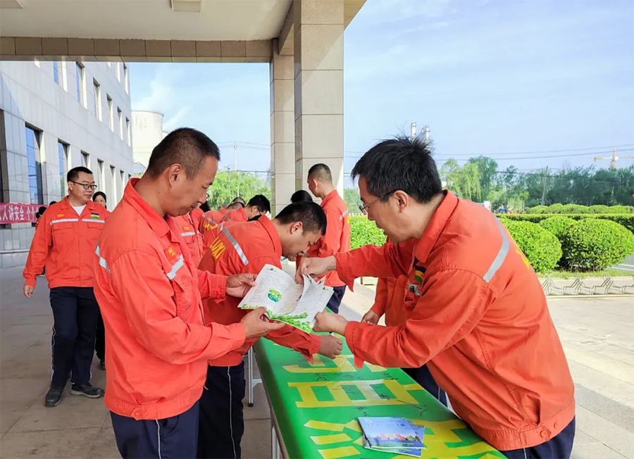 煤化二事業(yè)部環(huán)保職能負(fù)責(zé)人李少捷介紹:“為進(jìn)一步增強(qiáng)事業(yè)部全員環(huán)境保護(hù)責(zé)任意識,牢固樹立生態(tài)文明理念,營造全員參與、支持環(huán)保工作的濃厚氛圍。事業(yè)部開展以“人與自然和諧共生的現(xiàn)代化”為主題的宣傳活動。”活動現(xiàn)場以懸掛橫幅、直播2023年六五環(huán)境日國家主場活動、觀看國家主場宣傳片、聊城市主題宣傳片、學(xué)習(xí)《公民生態(tài)環(huán)境行為規(guī)范十條》等多種形式開展環(huán)境保護(hù)宣傳,切實(shí)提高廣大群眾的環(huán)保意識,在事業(yè)部營造了“保護(hù)環(huán)境、人人有責(zé)”的濃厚氛圍。
